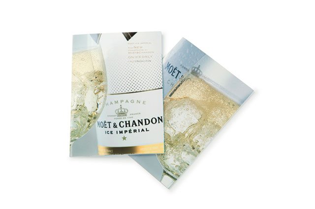 Tríptico de presentación de un nuevo Champagne para tomar con hielo